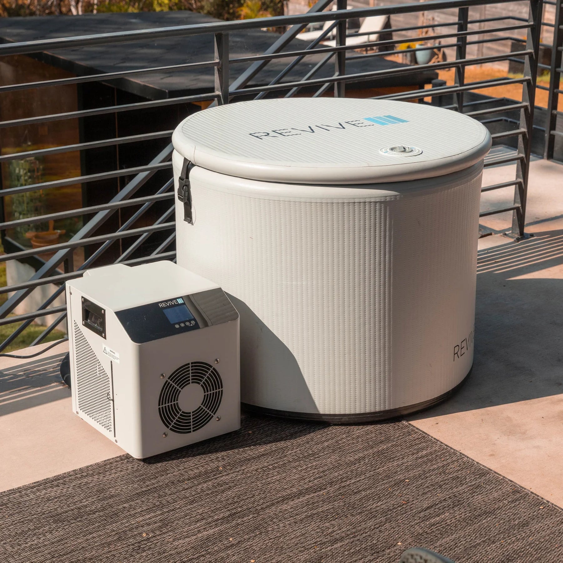 Plunge tub, chiller, tub backpack, dual-action air pump, and quick-connect hoses for a complete setup.